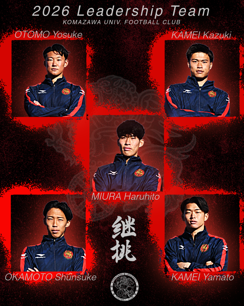 昨季関東大学サッカー2部リーグを優勝して、今季から1部リーグで戦うことになります。強度や質が上がっていくなかでも目の前に試合の勝ちにこだわり、人としても成長できるチームを作り上げていきたいです。チーム内で切磋琢磨し合いながら、常に全力で最後まで諦めない駒大らしさを見せつけ、謙虚・感謝・素直に戦い日本一を目指し頑張ります。